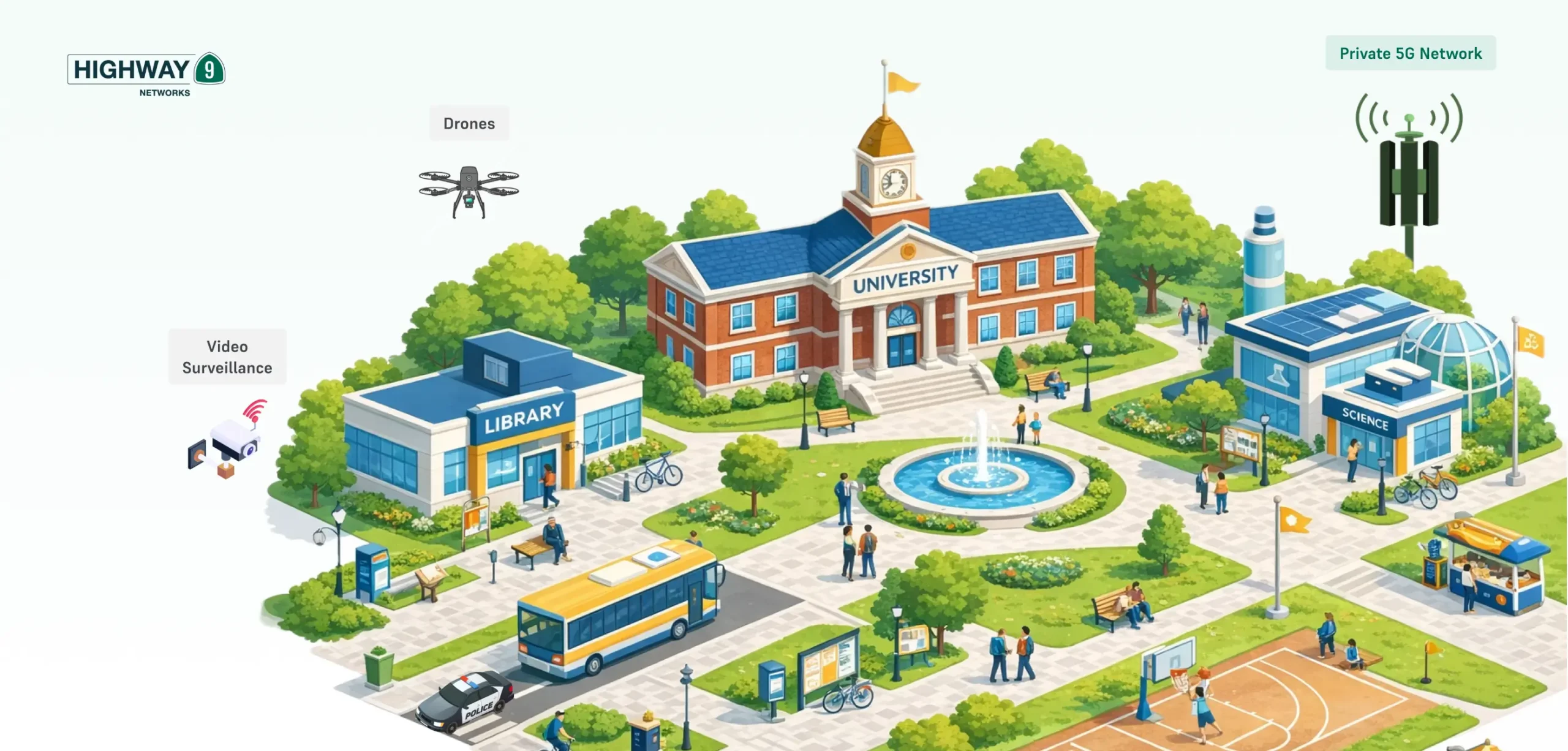 A mobile cloud approach with private 5G campus security enables higher education institutions to take control of their environment. It provides the dedicated bandwidth, coverage, and security necessary to protect the campus community effectively. Highway 9 Networks offers the platform to modernize security infrastructure today while laying the foundation for the smart campus of the future.